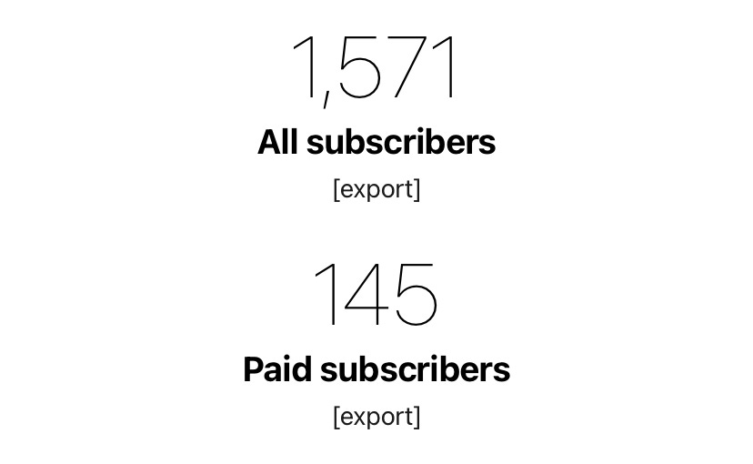 There we go! I’d like to end today by issuing my profound, heartfelt, honestly-a-bit-teary thanks for all your support since last week’s Hit Points progress update. In addition to some lovely, and tremendously motivating comments and messages from readers, it’s been a ridiculously good week for both free and paid signups. This time last week, you may recall, we had 1,484 signups, of whom 125 were paid. Here’s where we are today: