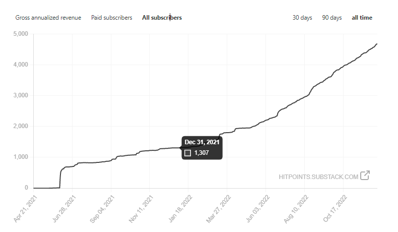 - As of 8.30am on December 16, Hit Points has 4,673 readers, of whom 311 are paid.